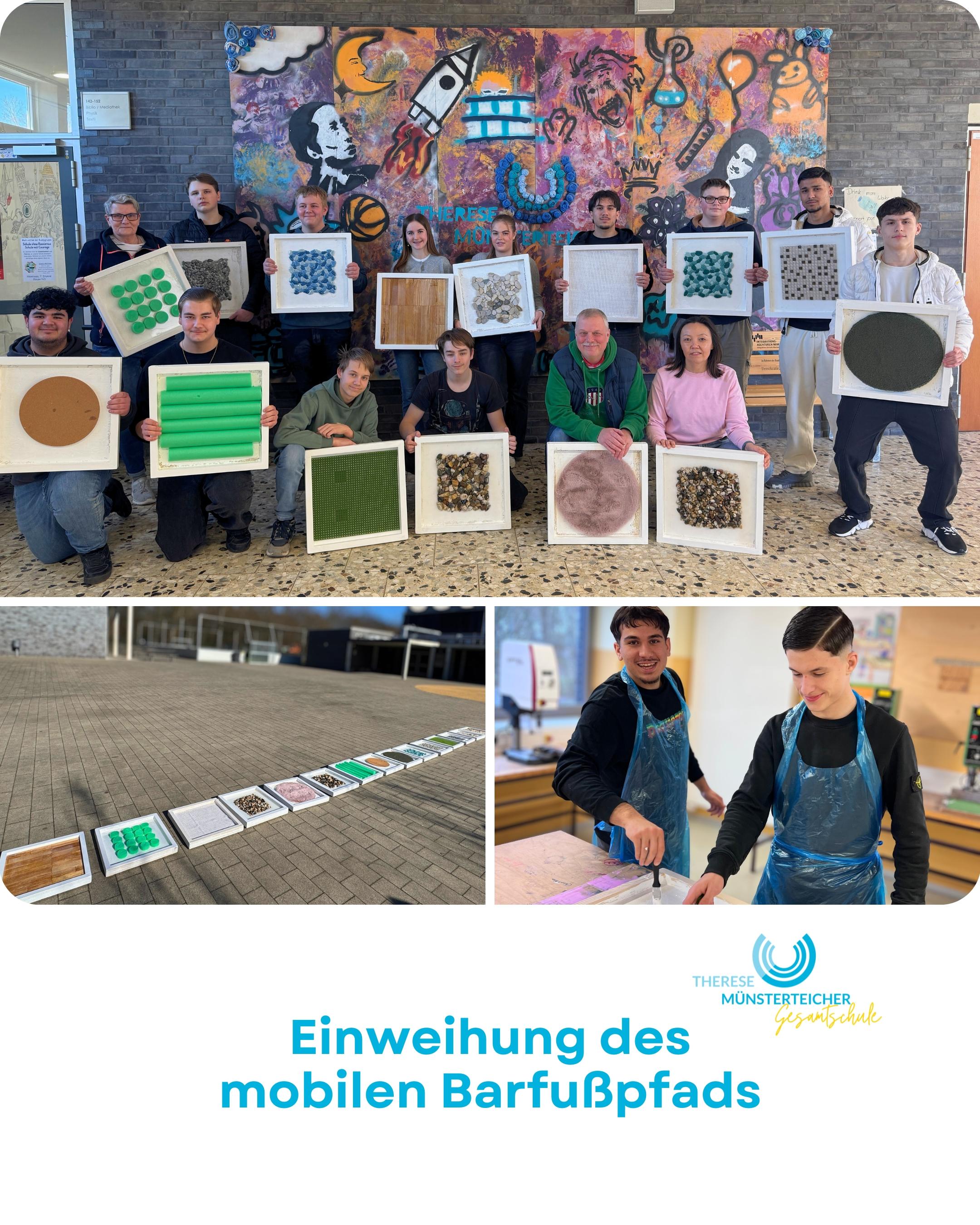 Bei bestem Frühlingswetter haben wir an der TMG ein neues Bewegungsangebot eingeweiht: unseren mobilen Barfußpfad! Mit der Sonne um die Wette strahlten die Schüler des 10er Technikkurses, die das Projekt unter Leitung von Herrn Sascha Dicken wochenlang im Unterricht gestaltet haben.